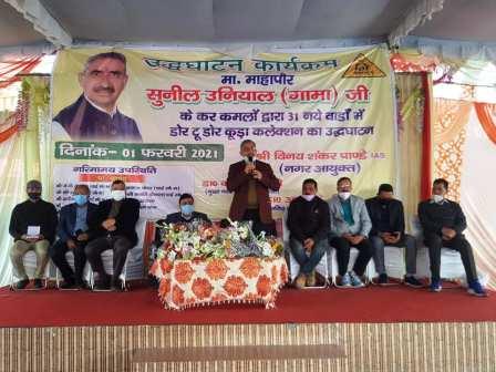 देहरादून। जोगीवाला स्थित एक निजी वेडिंग पॉइंट में नगर निगम में जुड़े ग्रामीण क्षेत्र के 31 नए वार्डों में डोर-टू-डोर कूड़ा कलेक्शन कार्यक्रम का उद्घाटन किया। नई व्यवस्था के अस्तित्व में आने से वार्ड संख्या 94 एवं 95 नत्थनपुर प्रथम एवं द्वितीय एवं अन्य वार्डों में डोर टू डोर कूड़ा कलेक्शन के माध्यम से स्वच्छता व्यवस्था अधिक सुदृढ़ होगी। 50 रुपये के मासिक शुल्क के साथ नई व्यवस्था सभी नए वार्डों में स्थापित होगी। इस मौके पर मेयर सुनील गामा ने लोगों से अनुरोध है कि वे प्राइमरी स्तर पर ही कूड़े का सेग्रीगेशन गीले एवं सूखे के रूप में अवश्य करें तत्पश्चात ही कूड़ा कलेक्शन को वाहन को कूड़ा निस्तारण हेतु दें।