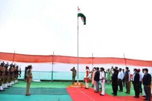 चमोली। 75वॉ स्वतन्त्रता दिवस के अवसर पर मुख्यमंत्री पुष्कर सिंह धामी ने प्रदेश की ग्रीष्मकालीन राजधानी गैरसैंण (भराडीसैंण) विधानसभा परिसर में ध्वजारोहण किया। इस अवसर पर विधानसभा अध्यक्ष प्रेमचन्द अग्रवाल, थराली विधायक मुन्नी देवी शाह, रूद्रप्रयाग विधायक भरत सिंह चौधरी, विधायक महेश नेगी, भाजपा जिला अध्यक्ष रघुवीर सिंह बिष्ट सहित स्थानीय जनप्रतिनिधि, गणमान्य नागरिक एवं स्कूली बच्चे मौजूद रहे।